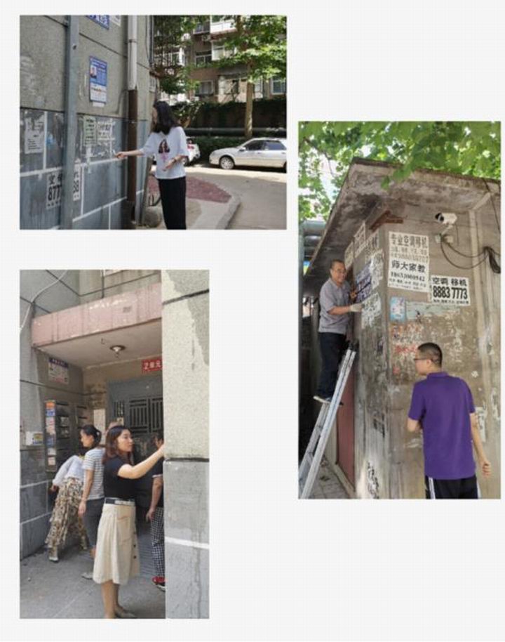 有的拿棍子把小廣告浸濕,有的拿小鏟子一點(diǎn)點(diǎn)鏟,有的拿鐵刷子一點(diǎn)點(diǎn)刷,有的拿涂料一遍遍涂抹;