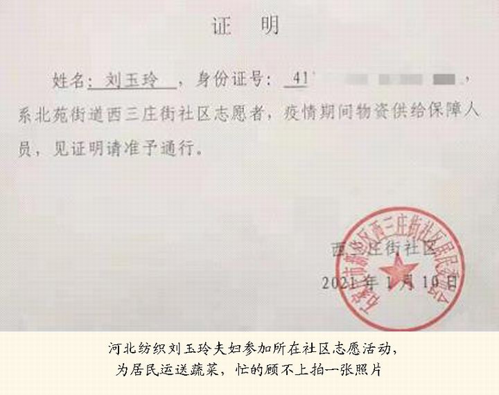 還有很多志愿者,如公司總部祖國(guó)忠、河北世貿(mào)通趙利麗、河北洲易聯(lián)宋勝武、河北紡織劉玉玲夫婦……他們一直忙碌在社區(qū)疫情防控的前沿陣地,甚至沒(méi)有時(shí)間停下來(lái)拍一張照片。